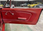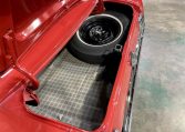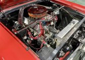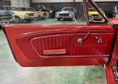 This 1965 Ford Mustang Fastback is a striking example of classic American muscle, finished in bright red over a matching red interior. Originally Smoke Gray from the factory, the car now sports a solid body and fresh paint, complemented by 15″ Magnum 500 wheels and fog lights. Under the hood is a strong-running 347 V8 paired with a C4 automatic transmission. Mechanical upgrades include headers, dual exhaust with aftermarket mufflers, an aluminum radiator, welded-in subframe connectors, front and rear sway bars, and power 4-wheel disc brakes. The car features manual steering and a clean, factory-style interior with bucket seats, a floor shifter, fold-down rear seat, and auxiliary gauge pod under the dash. The odometer shows 35,998 miles (actual mileage unknown).