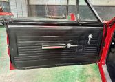 Older amateur red paint with flaws; originally Marina Blue. Some isolated rust spots underneath. 18″ Coy wheels with 225/45-235/50 tires. SS emblems (not a true SS).