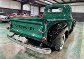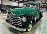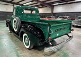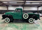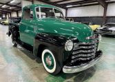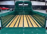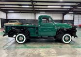 This beautifully restored 1953 Chevrolet 3100 Pickup features a strong rebuilt 216 inline 6-cylinder engine paired with a 3-speed manual transmission and original 3:55 rear gears. Finished in classic green with black fenders and running boards, it boasts a very nice wood bed kit, restored vacuum wipers, and 16′ wheels wrapped in Coker radial tires. The three-window cab houses a stock-style bench seat interior with factory-style gauges and a column-mounted 3-speed shifter. Manual steering and brakes (drum) maintain its original driving feel. With a solid body, very clean underside, and an odometer reading 1,108 miles (unverified), this frame-off restoration comes with a folder of miscellaneous receipts from the restoration.