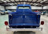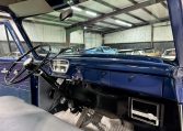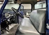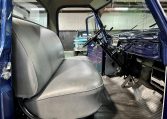 Solid body with nice blue paint and 15″ steel wheels. Factory style bench seat interior and gauges.