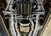 It features power steering, power front disc brakes, rear drums, and cold Classic Auto Air A/C. Other upgrades include subframe connectors, a shock tower brace, Shelby GT350 alloy wheels, and Custom Autosound radio with rear 6×9 speakers. Odometer reads 83,402 miles (believed original but unverified).