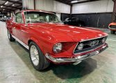 This 1967 Ford Mustang Fastback is finished in its original Candy Apple Red over a Parchment luxury bucket seat interior. It’s powered by a professionally built, era-correct 390 V8 paired with a C6 automatic and Gear Vendors overdrive. The engine build, includes a Pertronix ignition system, headers, H-pipe, Magnaflow mufflers, and full tailpipes.