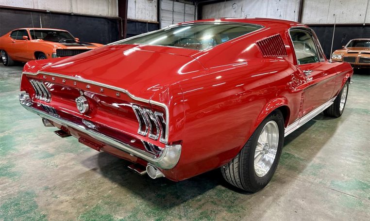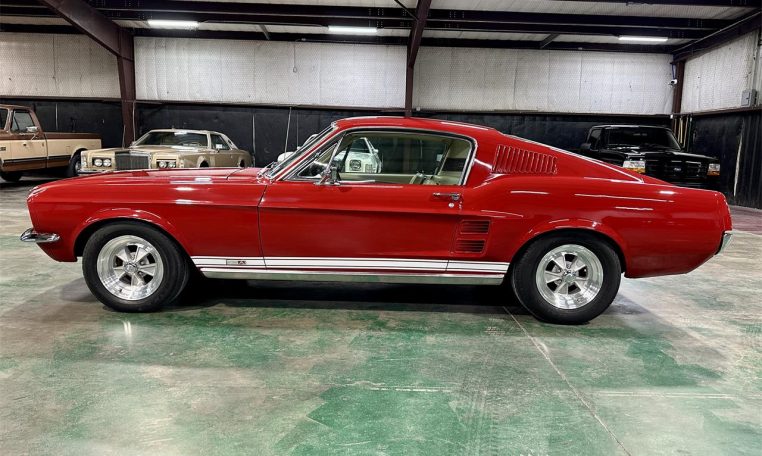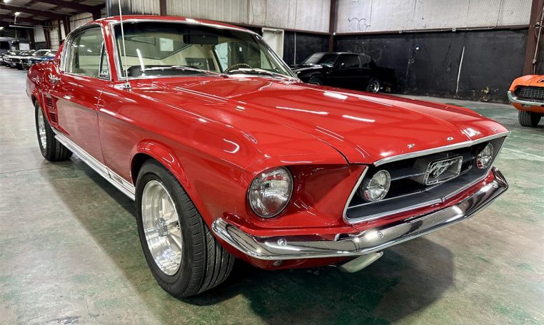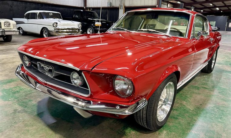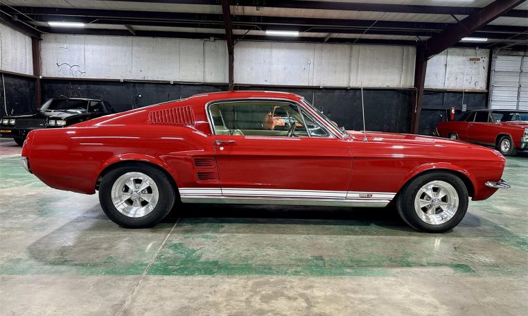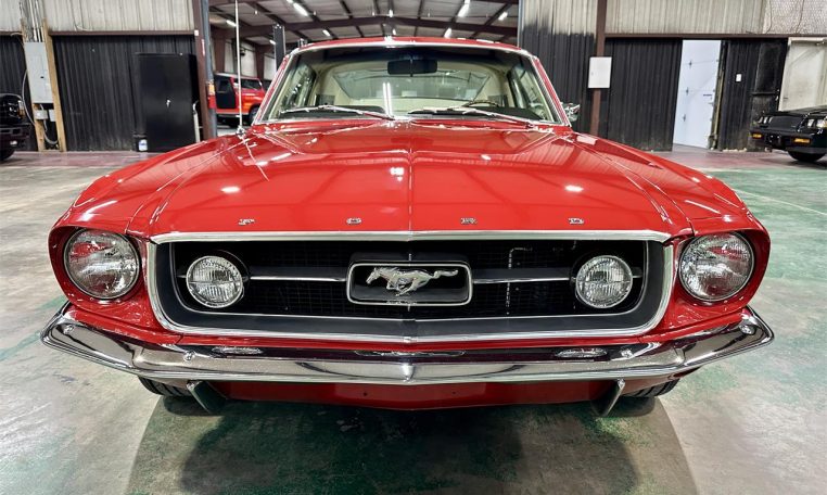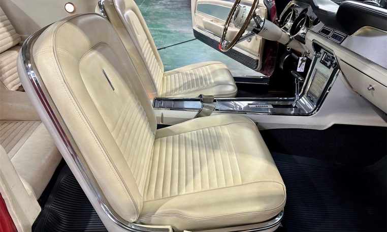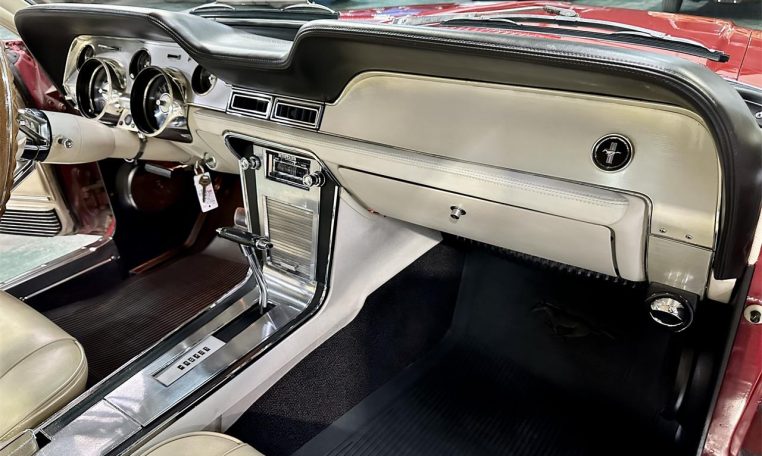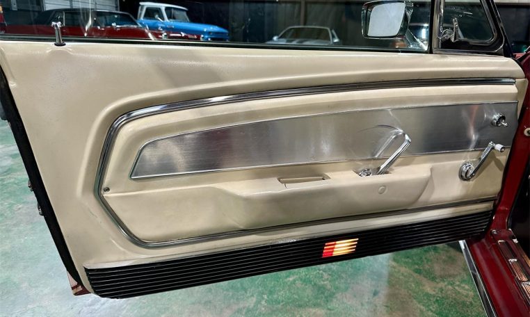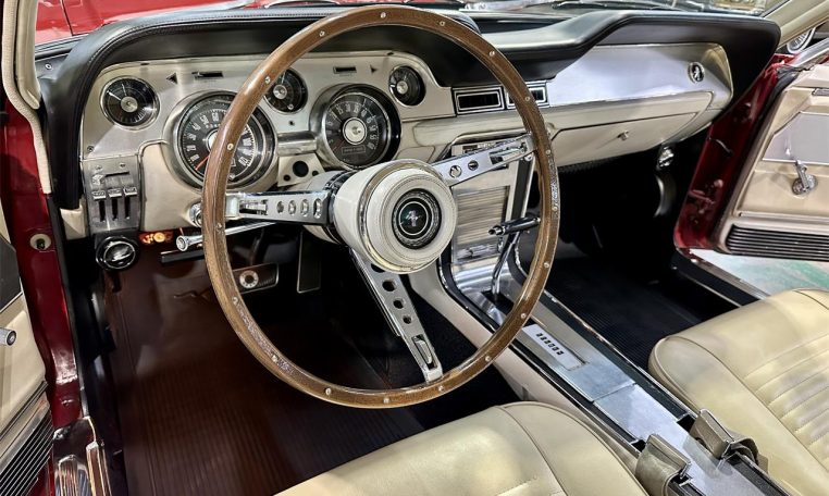 This 1967 Ford Mustang Fastback is finished in its original Candy Apple Red over a Parchment luxury bucket seat interior. It’s powered by a professionally built, era-correct 390 V8 paired with a C6 automatic and Gear Vendors overdrive. The engine build, includes a Pertronix ignition system, headers, H-pipe, Magnaflow mufflers, and full tailpipes.