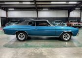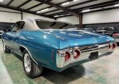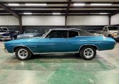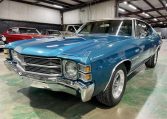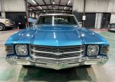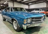 Numbers matching 350 V8 with Turbo 350 automatic transmission. Manifolds, dual exhaust, Flowmaster mufflers. Power steering, front disc brakes, factory AC (needs repair).