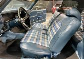 Solid body, Mediterranean Blue paint, 15′ Torq Thrust wheels. Interior with split bench, new plaid inserts, carpet, dash, headliner, AM/FM/USB radio.