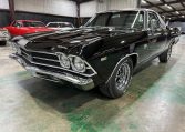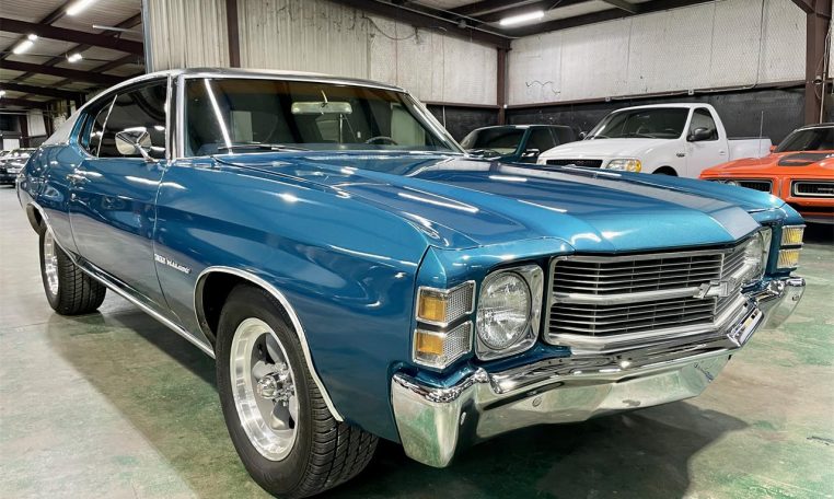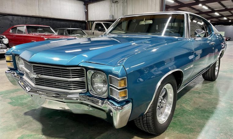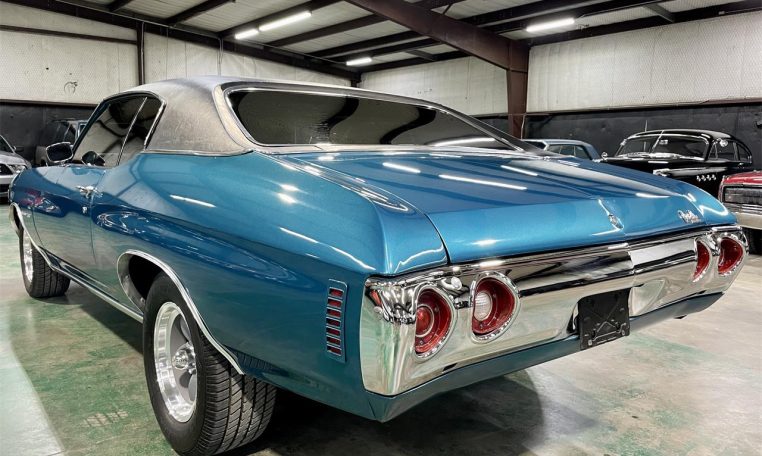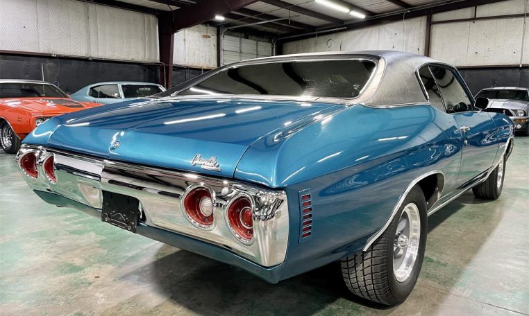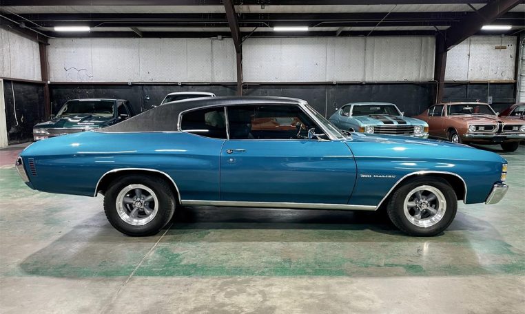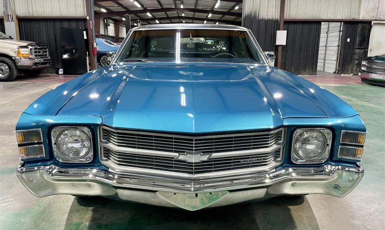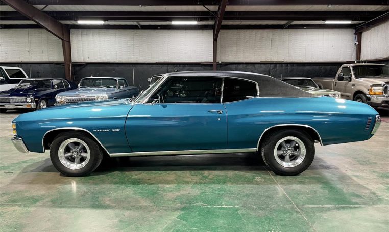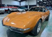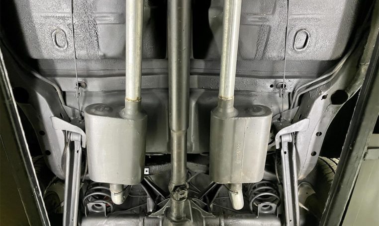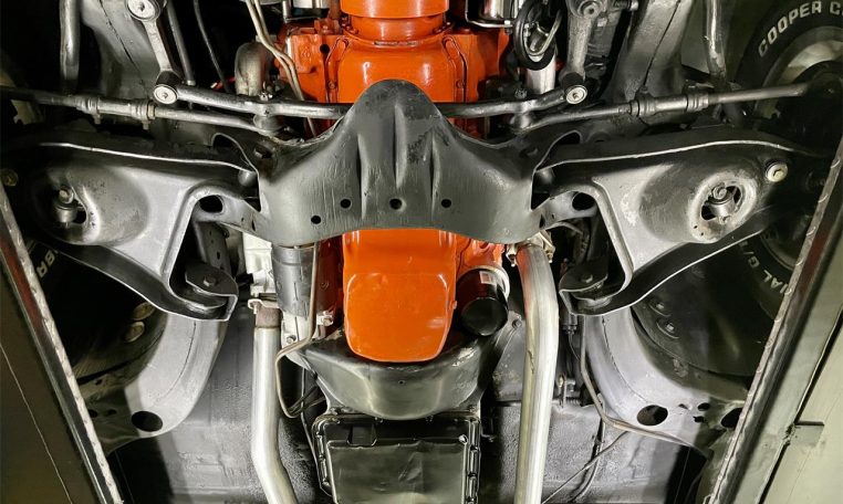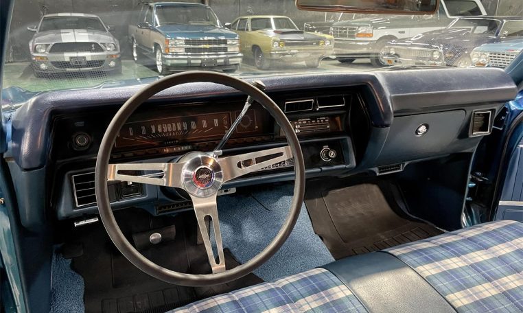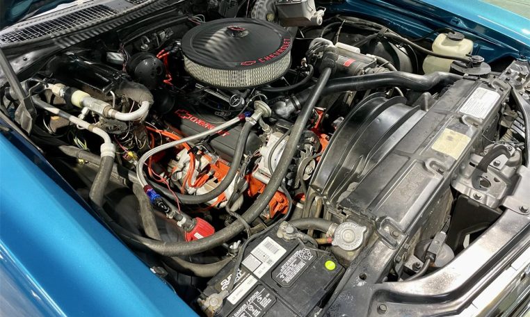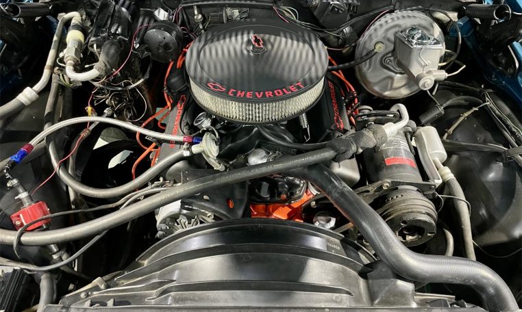 Numbers matching 350 V8 with Turbo 350 automatic transmission. Manifolds, dual exhaust, Flowmaster mufflers. Power steering, front disc brakes, factory AC (needs repair).