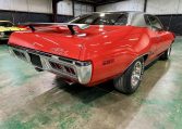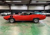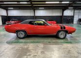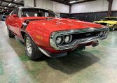 This 1971 Plymouth GTX is a true numbers-matching example powered by its original 440 V8 engine and 727 automatic transmission. Finished in Rallye Red (code FE5) with a black vinyl top, the car features a solid body and rides on 15″ Rallye wheels with new 255/60 and 275/60 tires. The interior boasts the original Halloween bucket seat design, center console, floor shifter, and an AM/FM radio. Mechanical highlights include power steering, manual front disc brakes, manifolds, dual exhaust with aftermarket mufflers, and distinctive machine gun tips. The odometer reads 67,324 miles, believed to be original but not fully verified. Very solid underneath with the fender tag intact, this GTX runs and drives great.