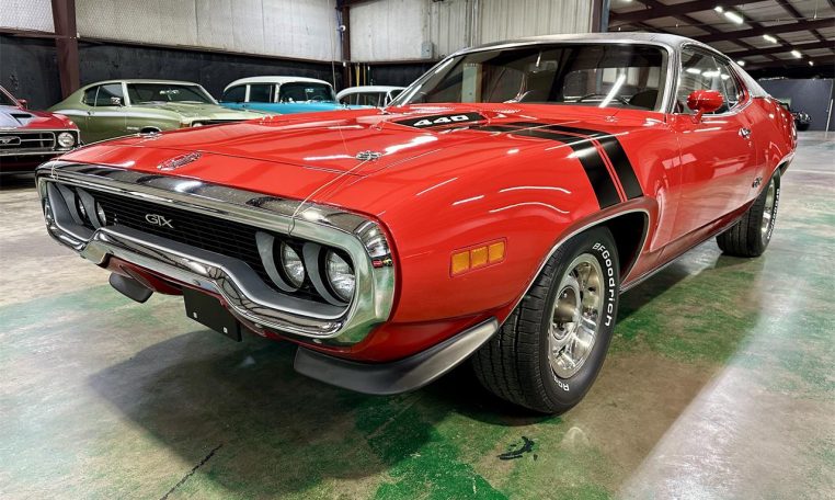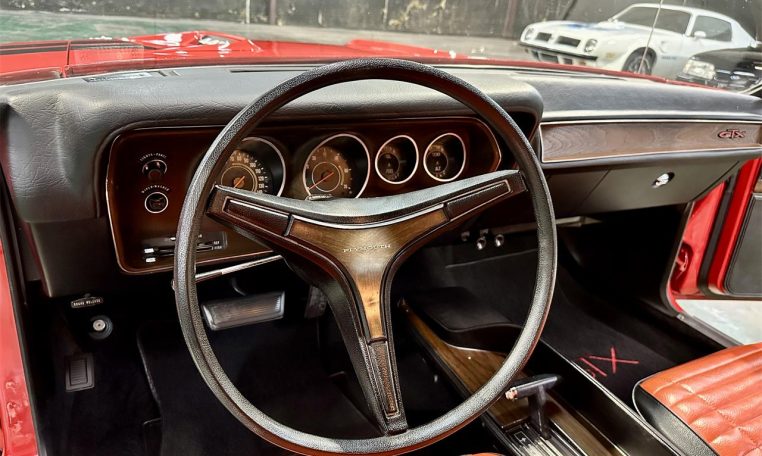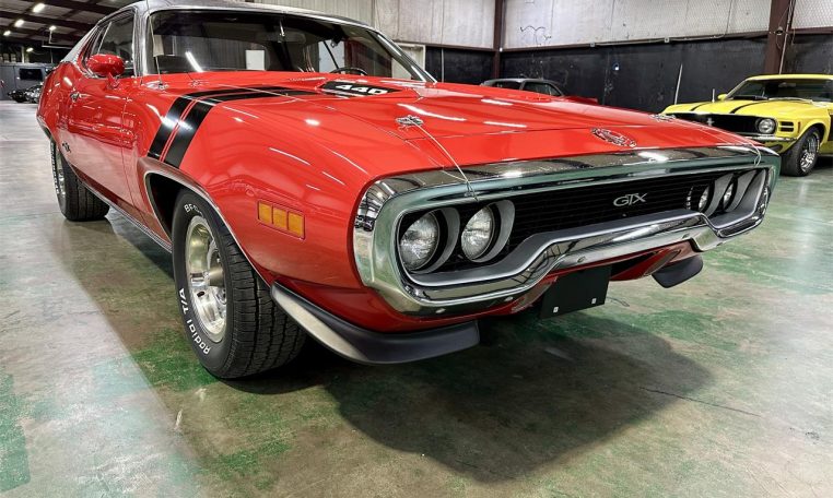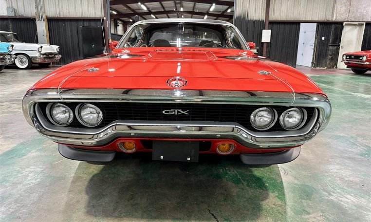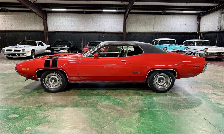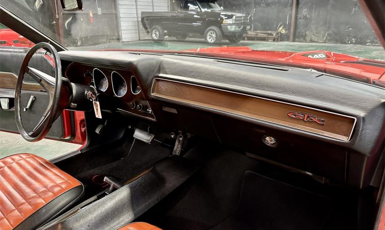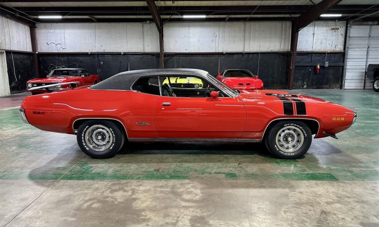 This 1971 Plymouth GTX is a true numbers-matching example powered by its original 440 V8 engine and 727 automatic transmission. Finished in Rallye Red (code FE5) with a black vinyl top, the car features a solid body and rides on 15″ Rallye wheels with new 255/60 and 275/60 tires. The interior boasts the original Halloween bucket seat design, center console, floor shifter, and an AM/FM radio. Mechanical highlights include power steering, manual front disc brakes, manifolds, dual exhaust with aftermarket mufflers, and distinctive machine gun tips. The odometer reads 67,324 miles, believed to be original but not fully verified. Very solid underneath with the fender tag intact, this GTX runs and drives great.