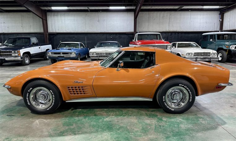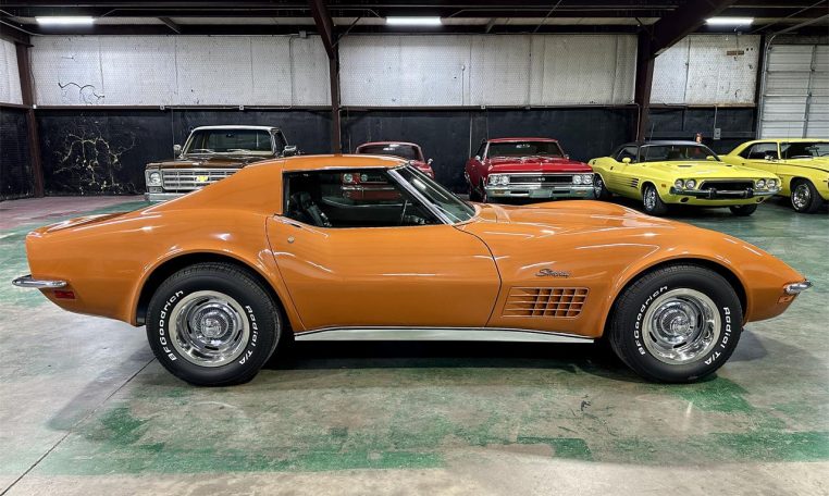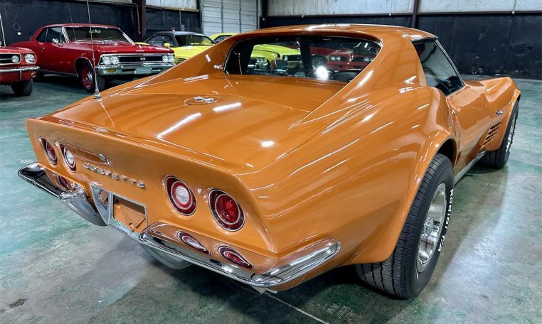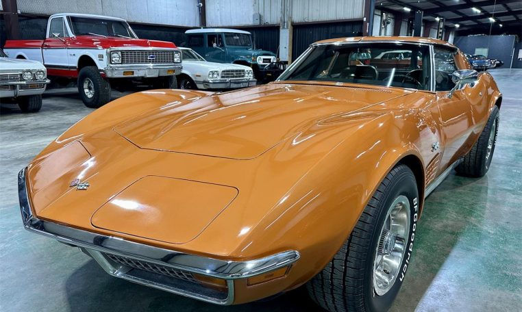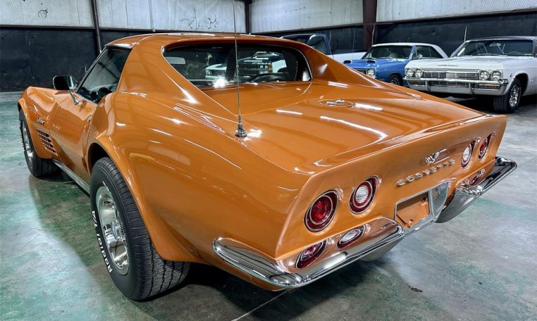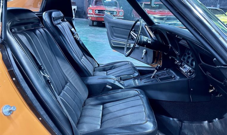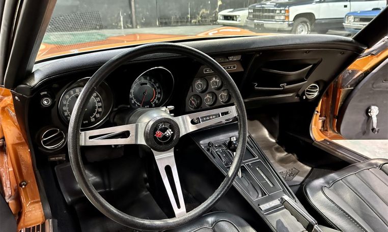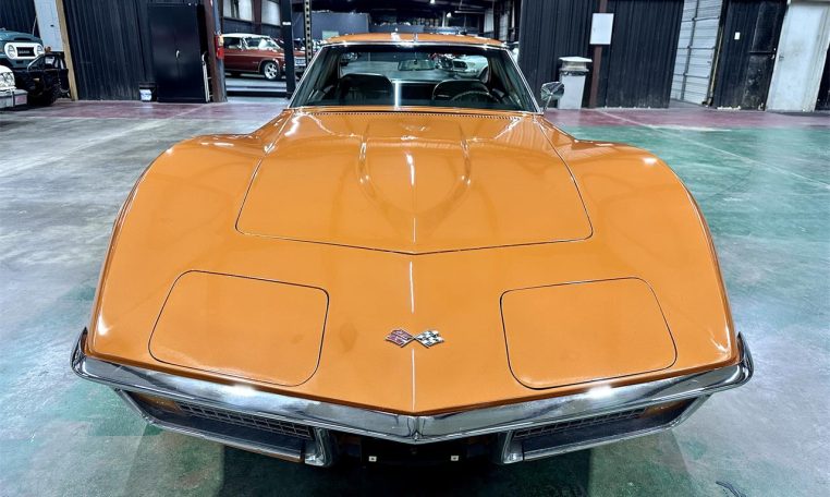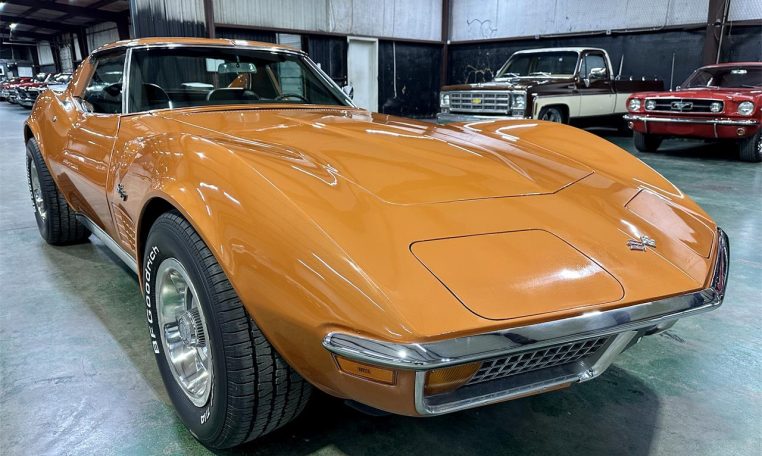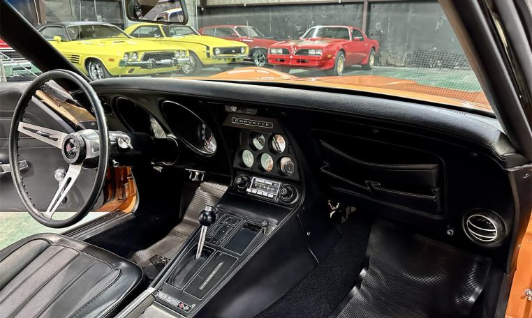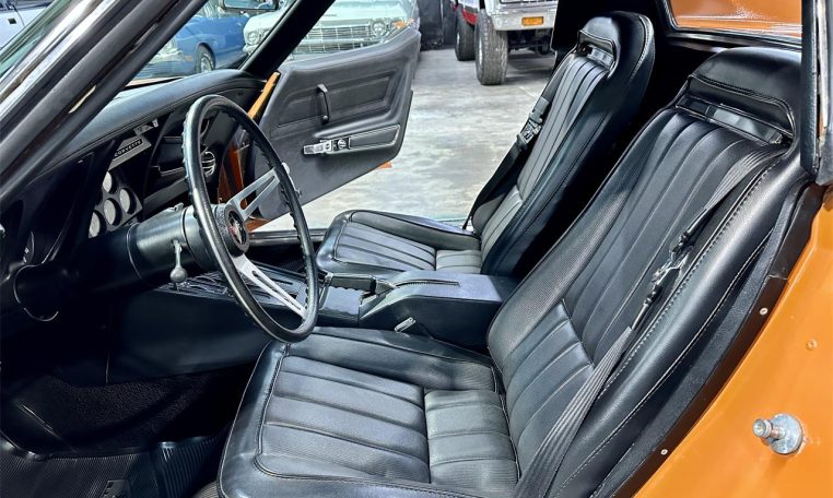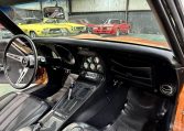 Ontario Orange paint (code 987, repainted) with factory black interior. Factory T-Tops and removable back glass. 15″ Rally wheels with new tires.