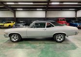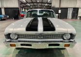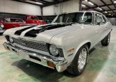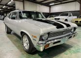 This 1972 Chevrolet Nova is a clean and solid classic finished in silver with a contrasting black vinyl top. Originally orange, the body has been nicely restored and rides on 15″ polished Torq Thrust wheels with 235/60 front and 255/60 rear tires. Powered by a great-running 350 V8 with Fast EZ 2.0 fuel injection, it’s paired with a Turbo 400 3-speed automatic transmission. The Nova features headers, dual exhaust with Flowmaster mufflers, an aluminum radiator, power steering, and power drum brakes. Inside, you’ll find bucket seats, a floor shifter, and a RetroSound radio (currently inoperative). Vintage air conditioning blows cold. The odometer reads 25,850 miles (actual mileage unverified).
