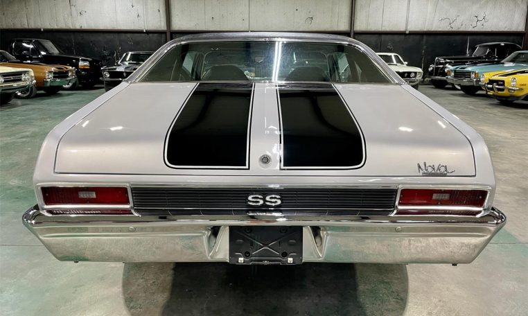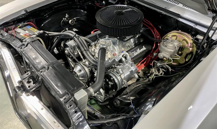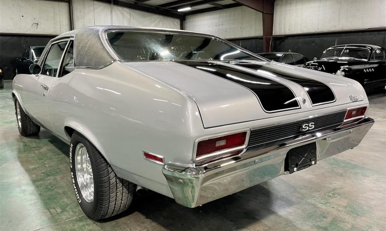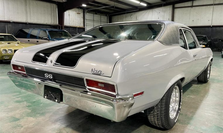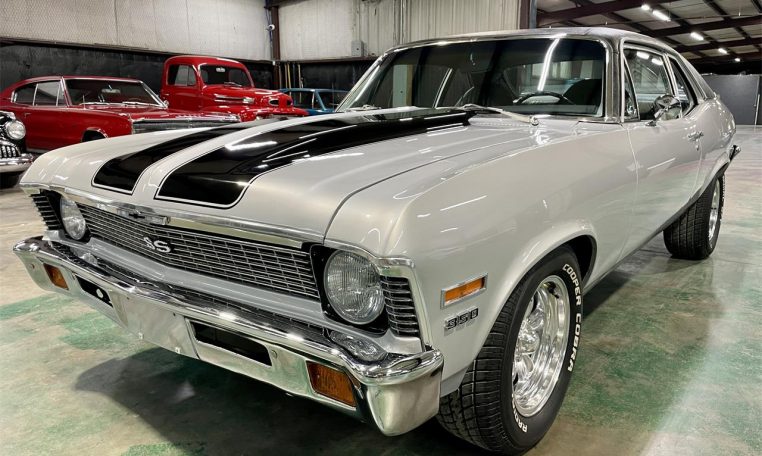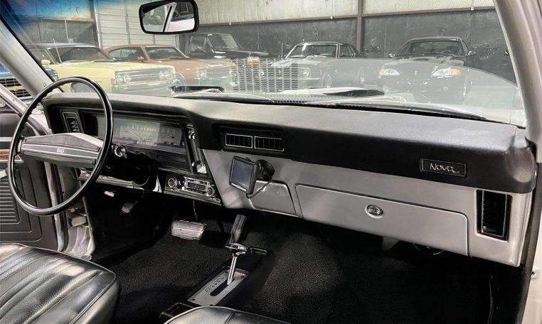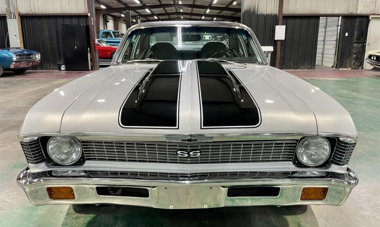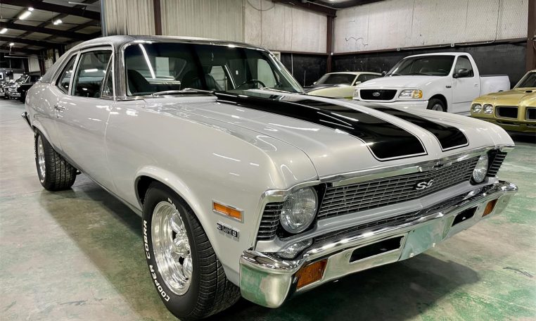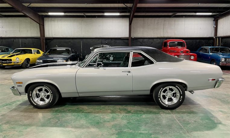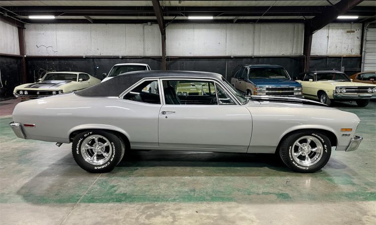 This 1972 Chevrolet Nova is a clean and solid classic finished in silver with a contrasting black vinyl top. Originally orange, the body has been nicely restored and rides on 15″ polished Torq Thrust wheels with 235/60 front and 255/60 rear tires. Powered by a great-running 350 V8 with Fast EZ 2.0 fuel injection, it’s paired with a Turbo 400 3-speed automatic transmission. The Nova features headers, dual exhaust with Flowmaster mufflers, an aluminum radiator, power steering, and power drum brakes. Inside, you’ll find bucket seats, a floor shifter, and a RetroSound radio (currently inoperative). Vintage air conditioning blows cold. The odometer reads 25,850 miles (actual mileage unverified).