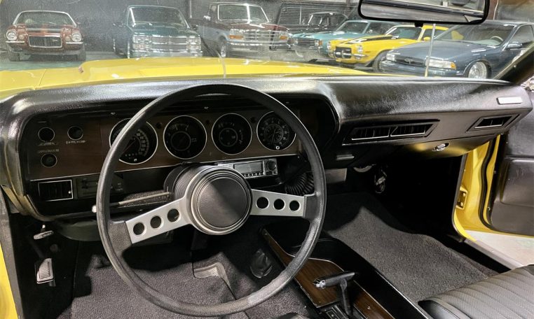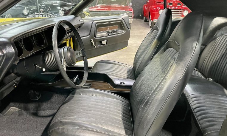 This 1973 Dodge Challenger Rallye is a sharp example of classic Mopar muscle, finished in vibrant Yellow over a clean factory-style black interior. Originally Gold, the car now features a solid body with Rallye package (Code A57), Rallye gauges, bucket seats, a center console, and a Slapstick shifter. It’s powered by its original, numbers-matching 340 V8 paired with a 727 Torqueflite automatic transmission and factory 8� rear end. The drivetrain is complemented by manifolds, dual exhaust with Flowmaster mufflers, and an aluminum radiator. Power steering, power front disc brakes, and cold Vintage Air A/C round out the mechanical highlights. The car rides on 15″ Rally wheels with 235/60 front and 255/60 rear tires. Odometer shows 81,908 miles (actual mileage not verified). This Challenger runs and drives great and retains its original fender tag.